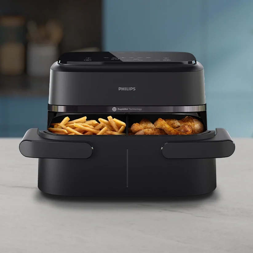 سرخ کن فیلیپس مدل NA150 یکی از جدیدترین و هوشمندترین محصولات معرفیشده توسط برند معتبر فیلیپس در سال 2025 است. این دستگاه با بهرهگیری از طراحی خاص «مخزن Flex»، امکان پخت همزمان دو غذای متفاوت را تنها با یک مخزن 7.1 لیتری فراهم کرده و درعینحال کیفیت پخت، سرعت عملکرد و مصرف بهینه را در بالاترین سطح ممکن ارائه میدهد. اگر بهدنبال یک هواپز بدون روغن فیلیپس هستید که هم کاربردی و هم قدرتمند باشد، این مدل یک گزینه ممتاز بهشمار میرود.